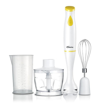 ...POWERPAC PPBL383 3 IN 1 HAND BLENDER SET (CHOPPER & BEAKER WHISK) 200W